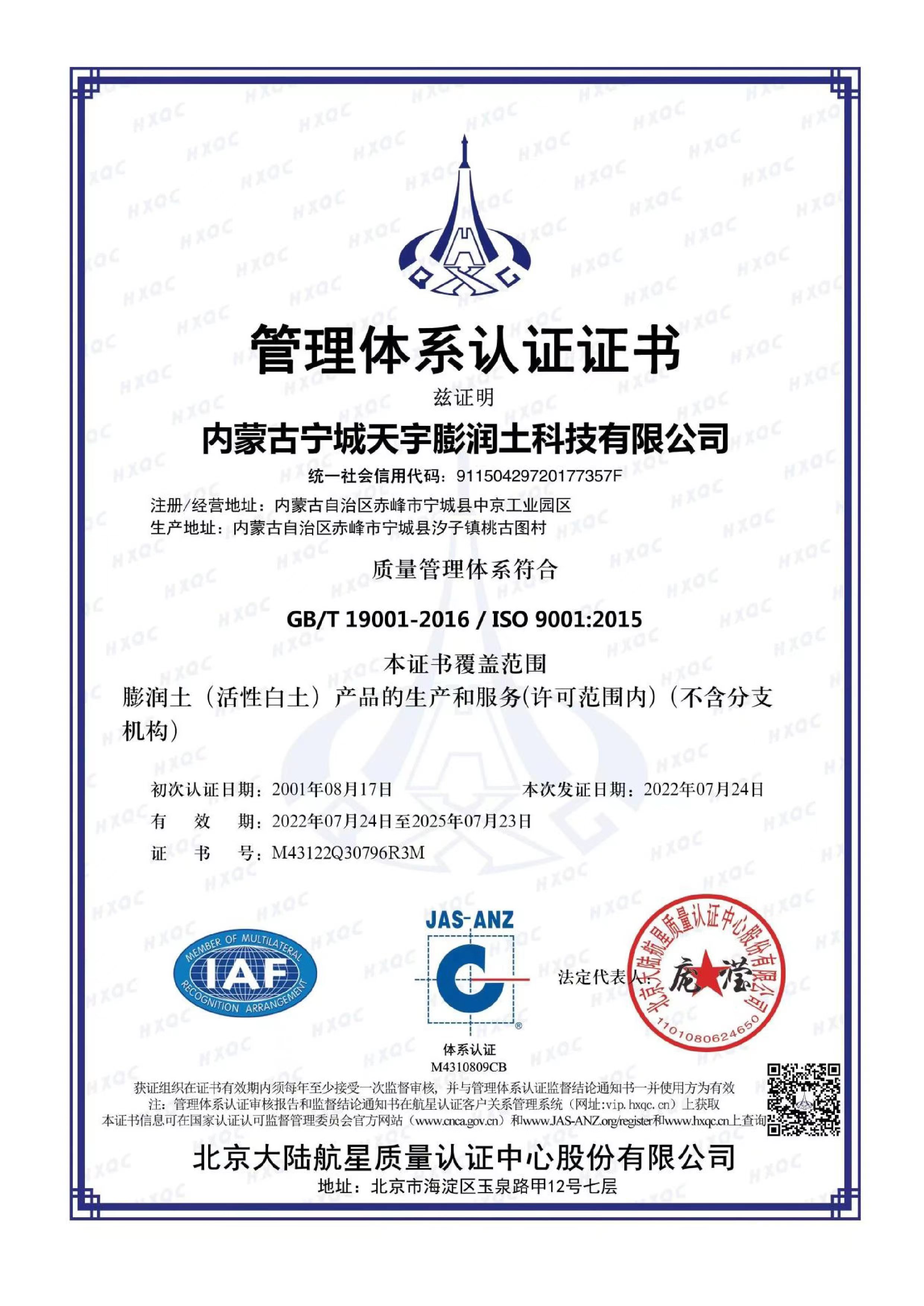 內蒙古著(zhù)名品牌天宇牌膨潤土系列產(chǎn)品