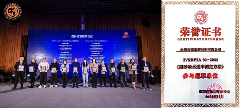 11月23日,山東省寵物行業(yè)協(xié)會(huì )貓砂產(chǎn)業(yè)分會(huì )主辦的“2023寵物貓砂供應鏈發(fā)展論壇”在山東青島勝利召開(kāi),同期召開(kāi)山東省寵物行業(yè)協(xié)會(huì )貓砂產(chǎn)業(yè)分會(huì )成立大會(huì )。赤峰市蒙宏新材料有限公司參與此次論壇,并積極參與了T/SDPIA02-2023《寵物貓砂吸水速率測定方法》的起草與制定。