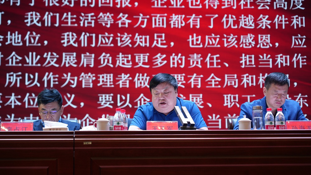 會(huì )上,孫海玉總經(jīng)理、趙杰經(jīng)理、姜子奇經(jīng)理分別就2023年膨潤土、旅游、房地產(chǎn)三大產(chǎn)業(yè)的各項工作開(kāi)展情況進(jìn)行了總結,對2024年工作任務(wù)作了具體安排。李珊珊經(jīng)理、李占江經(jīng)理、于惠治經(jīng)理、分別對財務(wù)、安全、綜合管理做了2023年的總結,并對2024年工作進(jìn)行了部署。